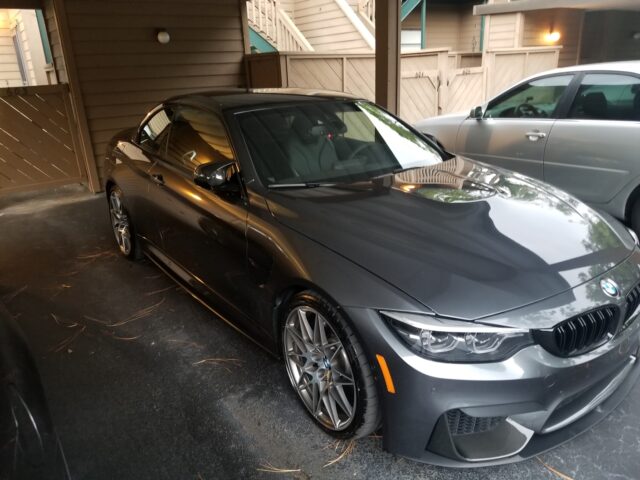 2020 BMW M4 Convertible — Metallic Gray / Black leather — DCT — Competition Package + Executive Package.